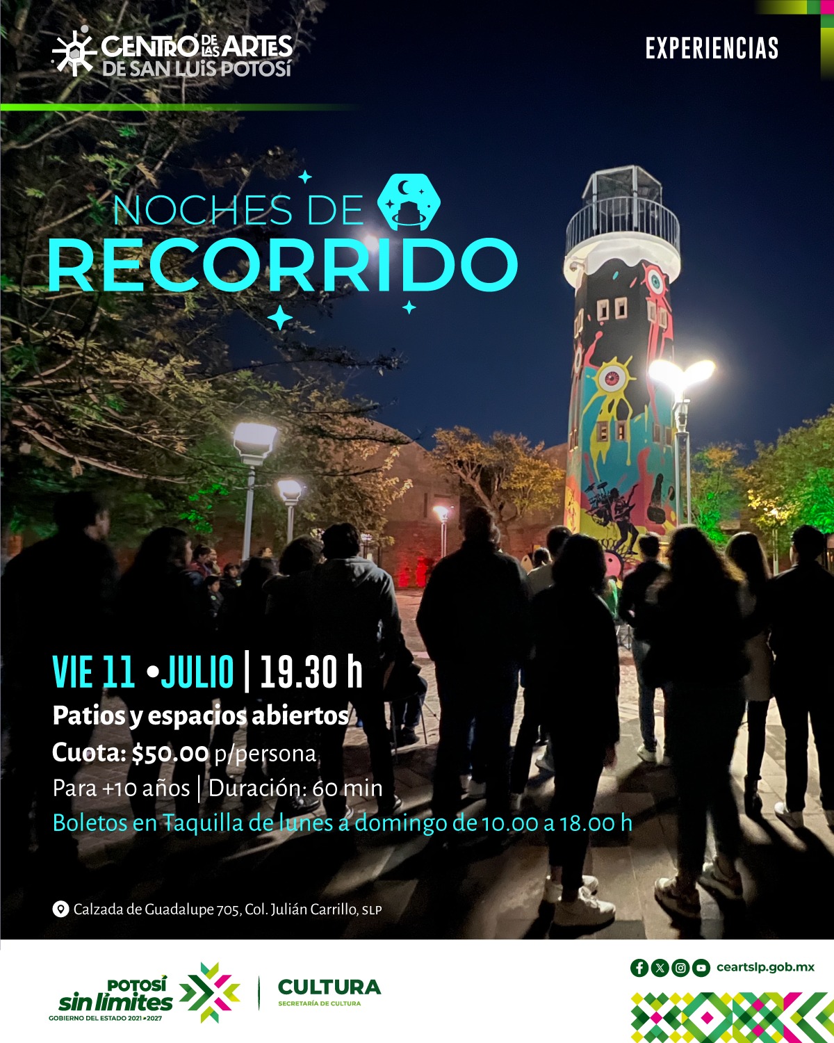 Boletos únicamente en taquilla del Ceart San Luis de lunes a domingo de 10:00 a 18:00 horas.