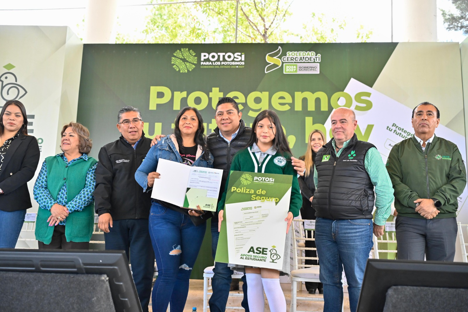 Así mismo el Gobernador puntualizó que el “Apoyo Seguro al Estudiante” inició en abril con la entrega de pólizas de seguro a alumnas y alumnos de preescolar, primaria y secundaria de escuelas públicas en las cuatro regiones del Estado y beneficia a más de 500 mil niñas, niños y jóvenes que están protegidos con un seguro de gastos médicos mayores, lo que convierte a San Luis Potosí en el primer estado del país en brindar este respaldo, con una inversión superior a los 100 millones de pesos.