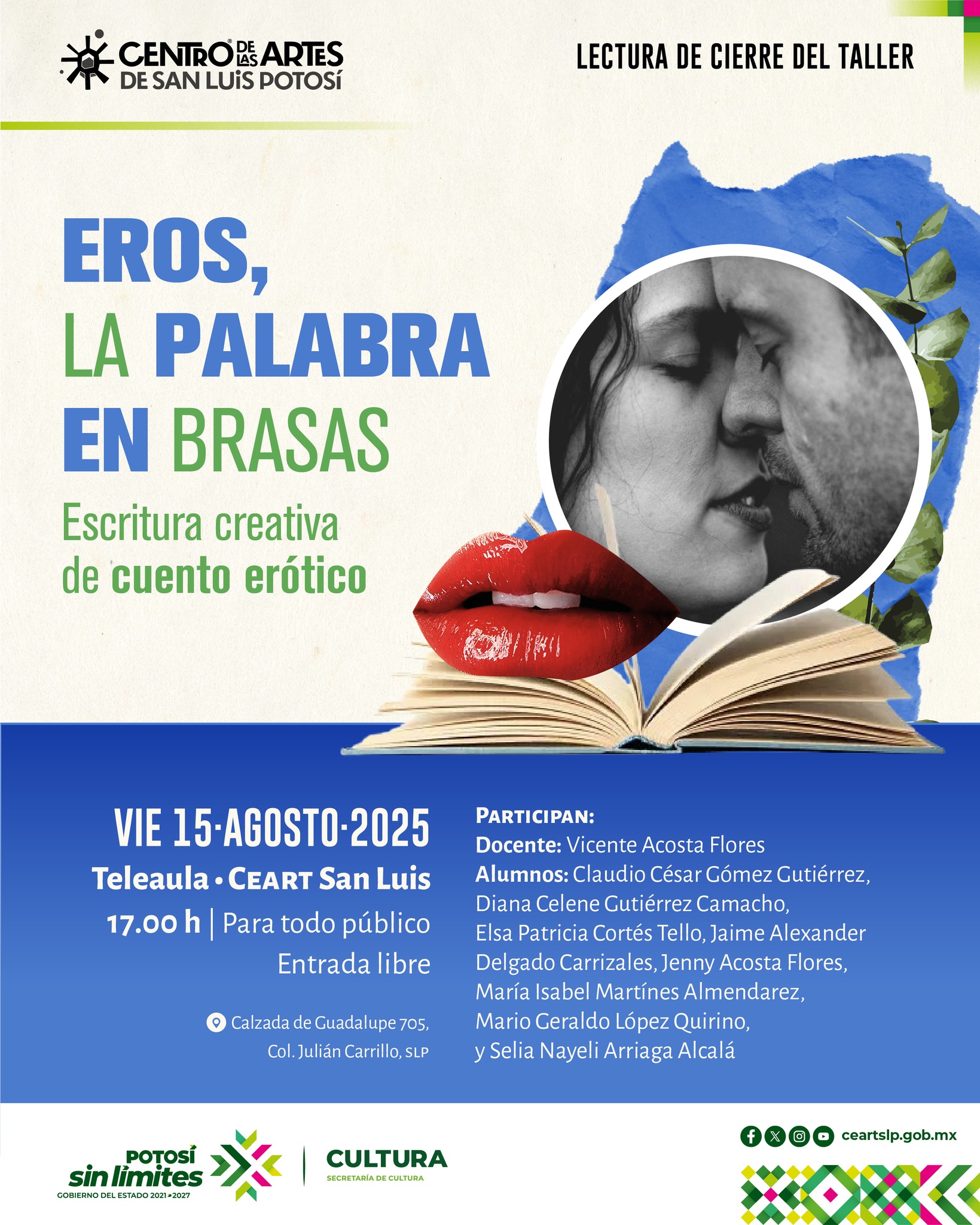 Te invitamos a la Lectura de trabajos del taller de cuento erótico, Eros, la palabra en brasas.