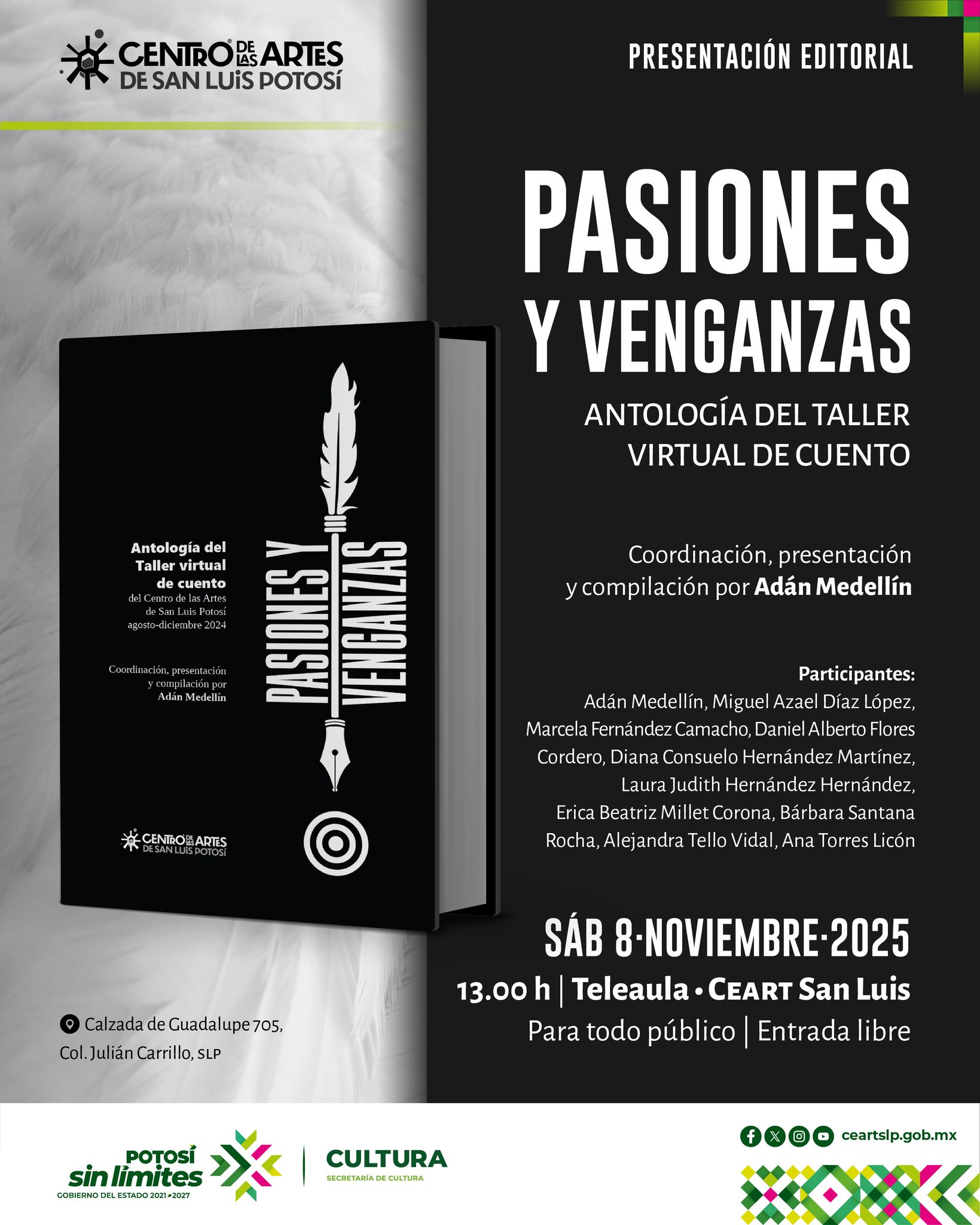 Te invitamos a la Presentación editorial de PASIONES Y VENGANZAS, ANTOLOGÍA DEL TALLER VISTUAL DE CUENTO, Coordinación, presentación y compilación por Adán Medellín.