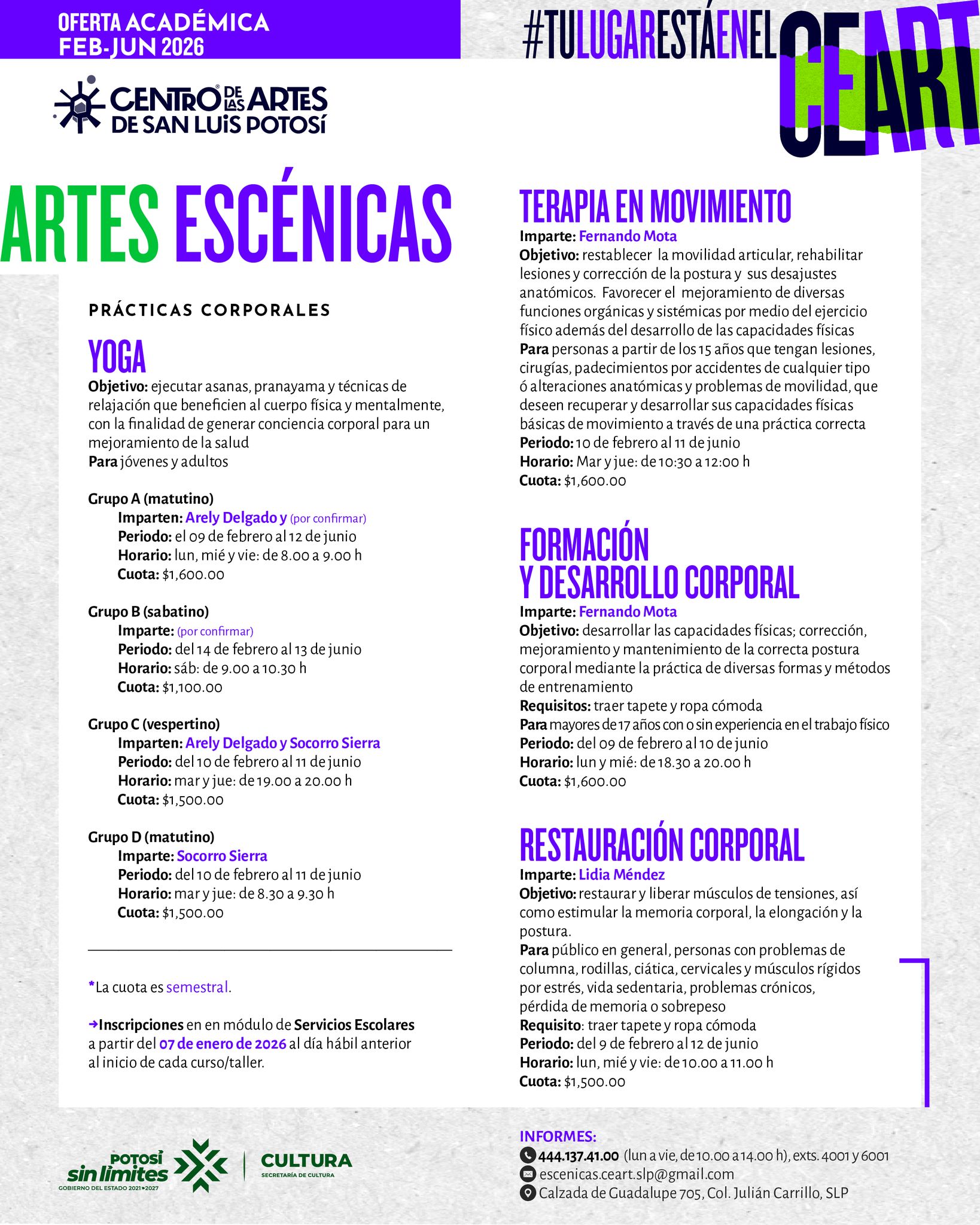 #CEARTSanLuis#OfertaAcadémica2026#CulturaSinLímites#tulugarestáenelCeartslpRicardo Gallardo CardonaGobierno del Estado de San Luis Potosí#ElCambioQueSeVive