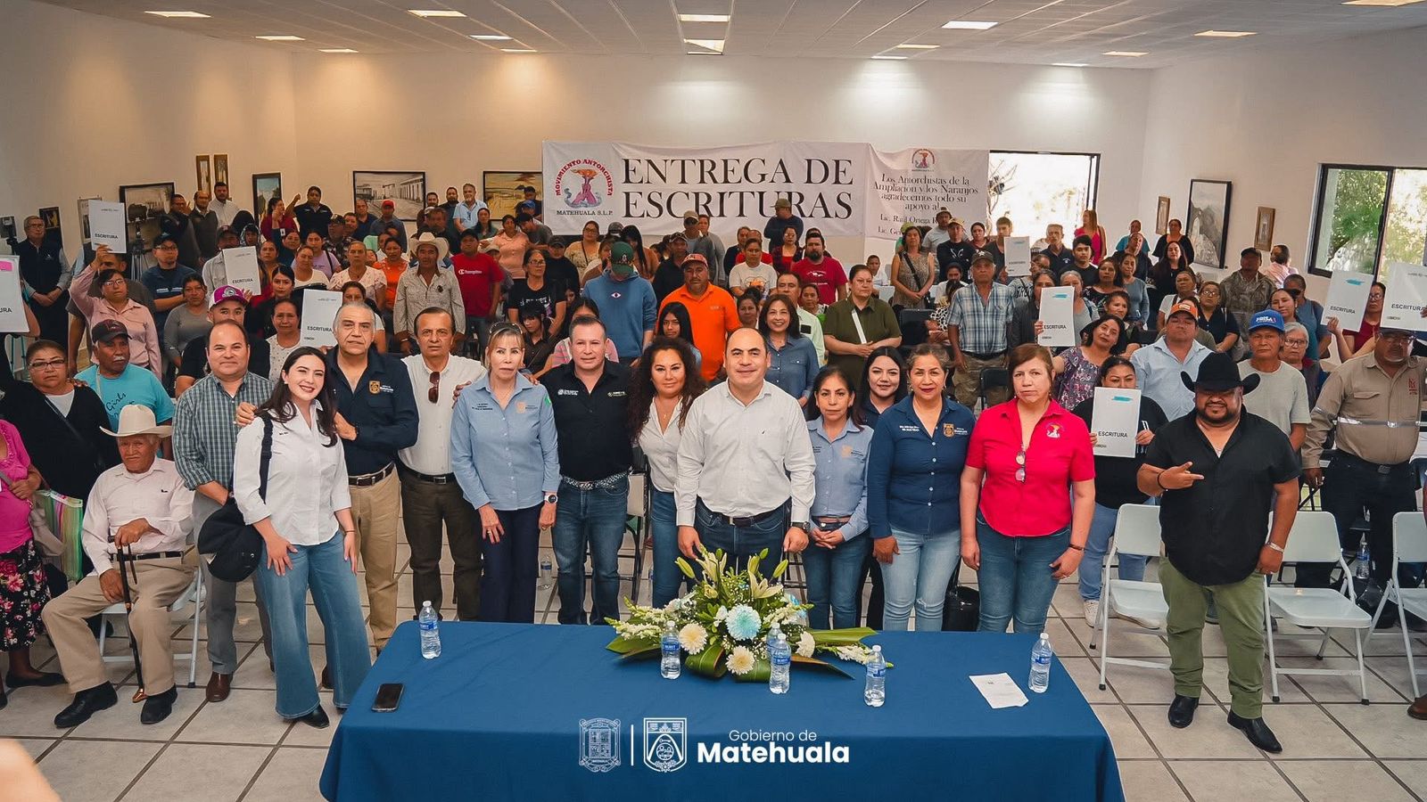 El presidente municipal de Matehuala, Lic. Raúl Ortega Rodríguez, encabezó la entrega de escrituras del programa “Tu Familia, Tu Patrimonio”, un esfuerzo conjunto entre el Gobierno Municipal y el Instituto de Regularización y Vivienda Social del Estado de San Luis Potosí, que brinda certeza jurídica a las familias sobre sus viviendas.